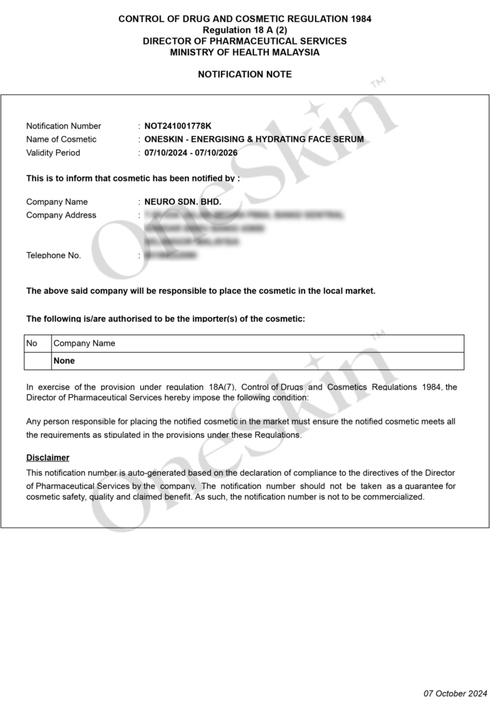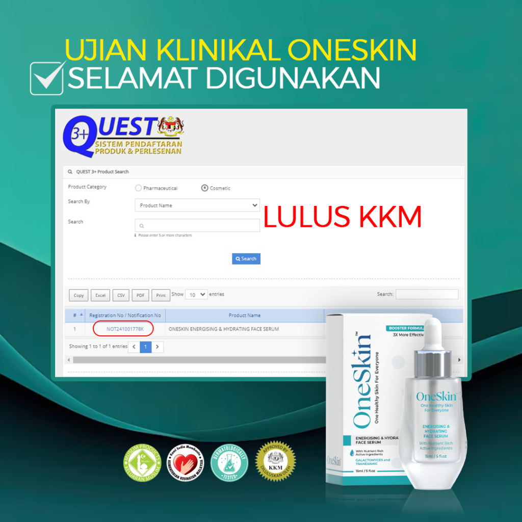 Jangan risau, ONESKIN ni selamat dan tiada mengandungi campuran bahan terlarang.