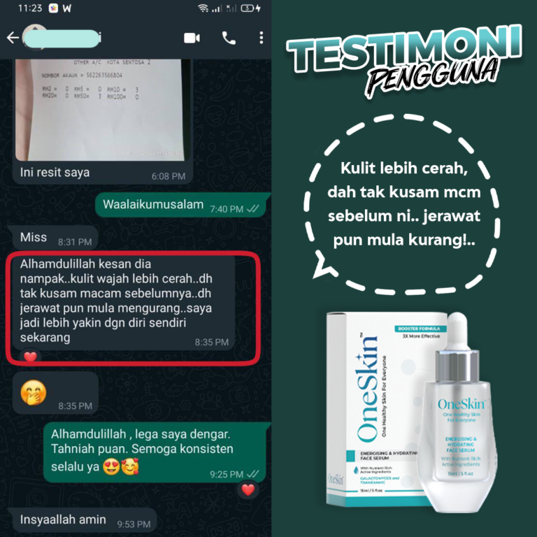 Ya, lebih dari 43,562 customer kami yang dah berjaya dapatkan kulit yang glowing, tiada lagi masalah jeragat, kedutan, eyebag dan kulit kering.